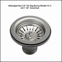 Ablaufgarnitur 3,5" für Öffnnung 82-100 mm Edelstahl. Achtung: diese Ablaufgarnitur ist für das Becken 10 C verwendbar! Mit 36 mm Hohlschraube. Alle anderen Becken haben einen 1 /1/2“ Anschluß und benötigen nur einen Siphon. Preis: 11,90 Euro/Stück incl. MwSt. |